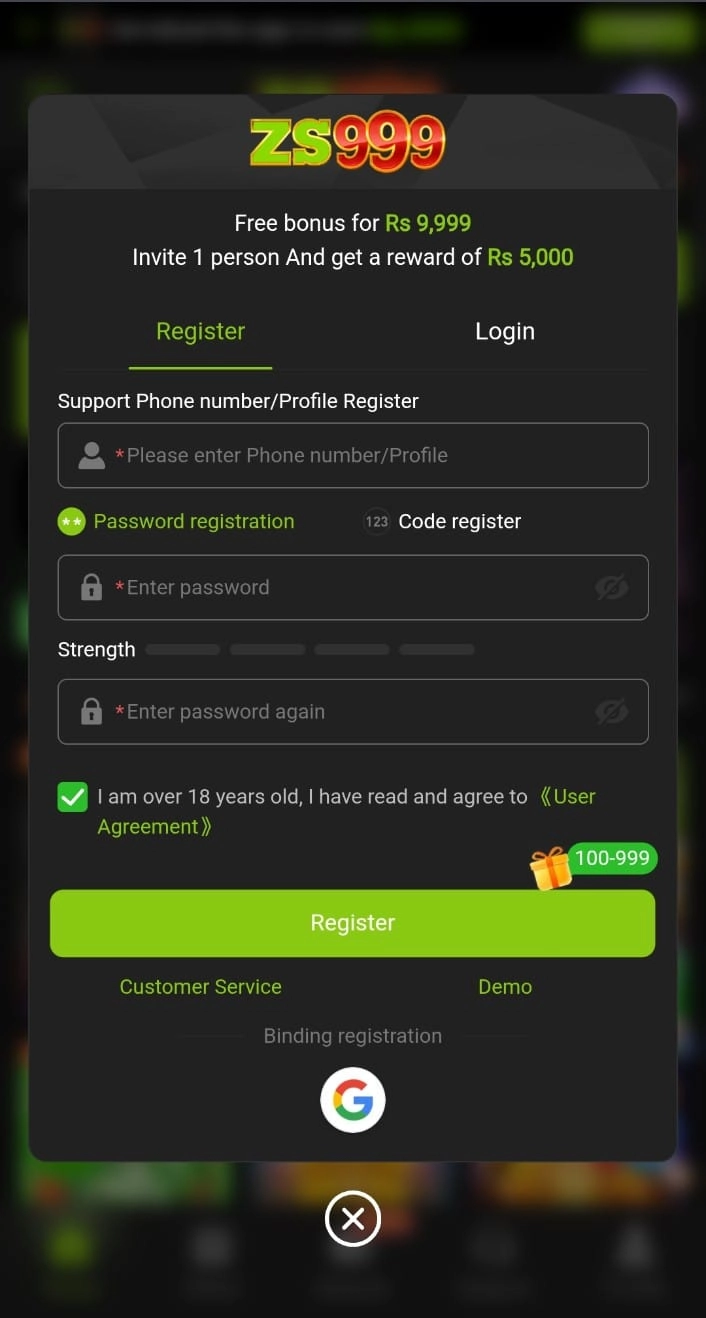 How to Register on ZS999 Game